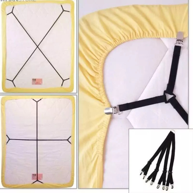 1 بسته شامل 4 عدد کش به هم متصل از وسط که هر یک با دو گیره ، گوشه های ملحفه را میگیرد . یعنی برای یک روتختی دو نفره ، 1 بسته گیره کافیست