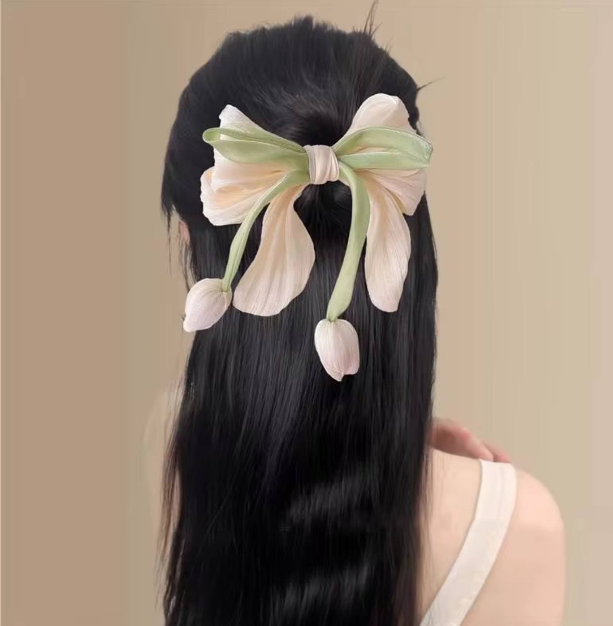 گیره فرانسوی با طراحی پاپیون و لاله حس طراوت و شادابی منتقل میکند . این گیره بهترین هدیه برای دختران و بانوان جوان میباشد