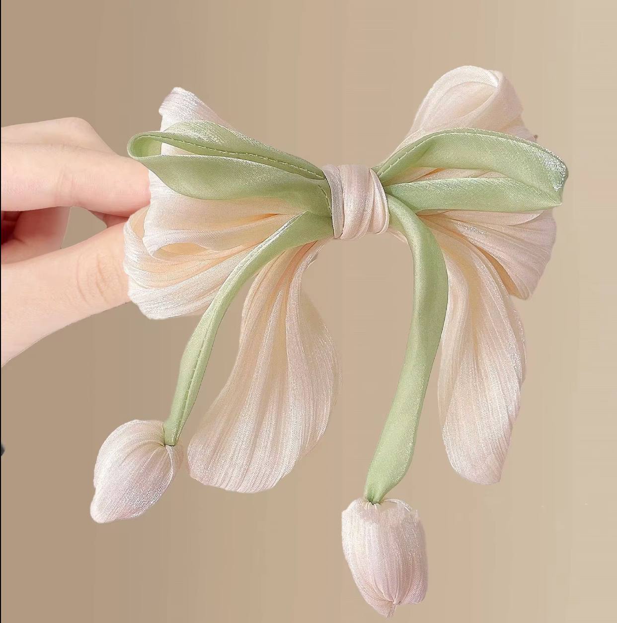 گیره فرانسوی حریر، با دیزاین لاله و زیبایی حیرت انگیز که هر نگاهی را به دنبال خود میکشاند.