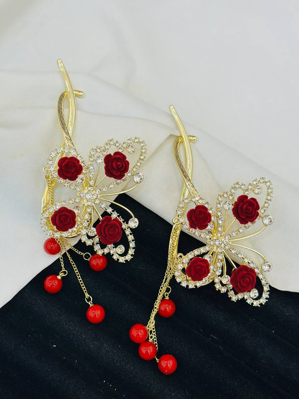 گیره چفتی محکم و زیبا مناسب مجالس ، میهمانیها، جشنها و بهترین هدیه برای شما و عزیزانتان. به طول ۱۲ سانتیمتر مناسب هر حجم مو با فنر قوی . به دلیل ترکیب رنگ طلایی و قرمز ، روی تمام رنگهای مو جلوه دارد.