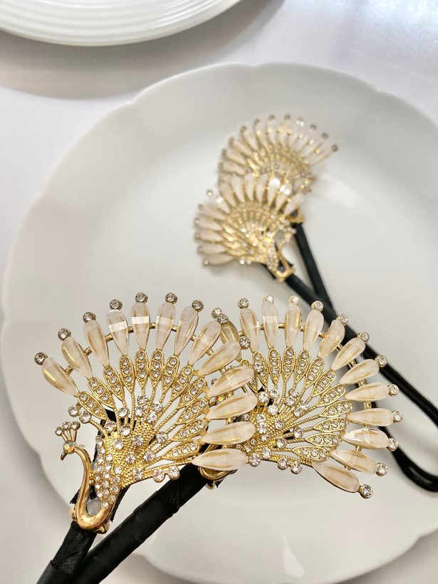 باندفریرشیک و رویایی با طرح طاووس ( نماد زیبایی) مناسب بالای ۱۵ سال و هر حجم مو .تزیین شده با نگینهای شفاف و کریستالهای تراش خورده. از معجزات برند زایا میباشد 🤌🦚