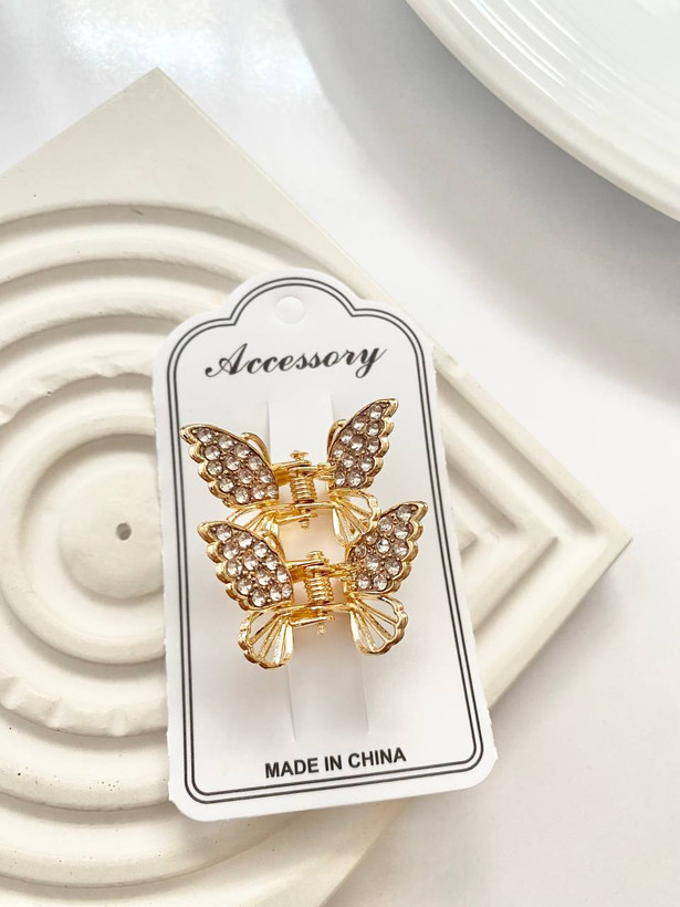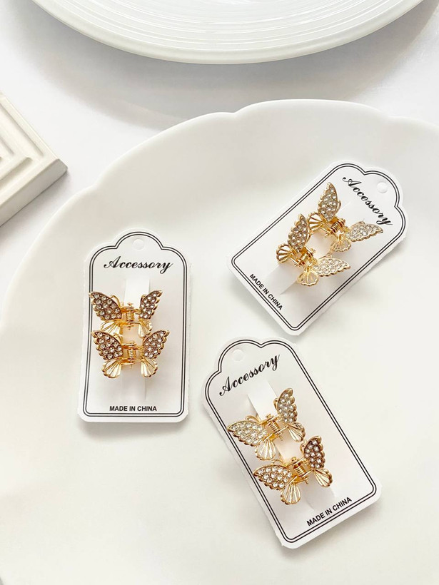 پک دو عددی مینی کلیپس زیبای پروانه با درخشش جواهری و سایز کوچک ، تصویری شیک از تکه ای جواهر را تداعی کرده و جلوه ای لوکس و لاکچری به موها میدهد .