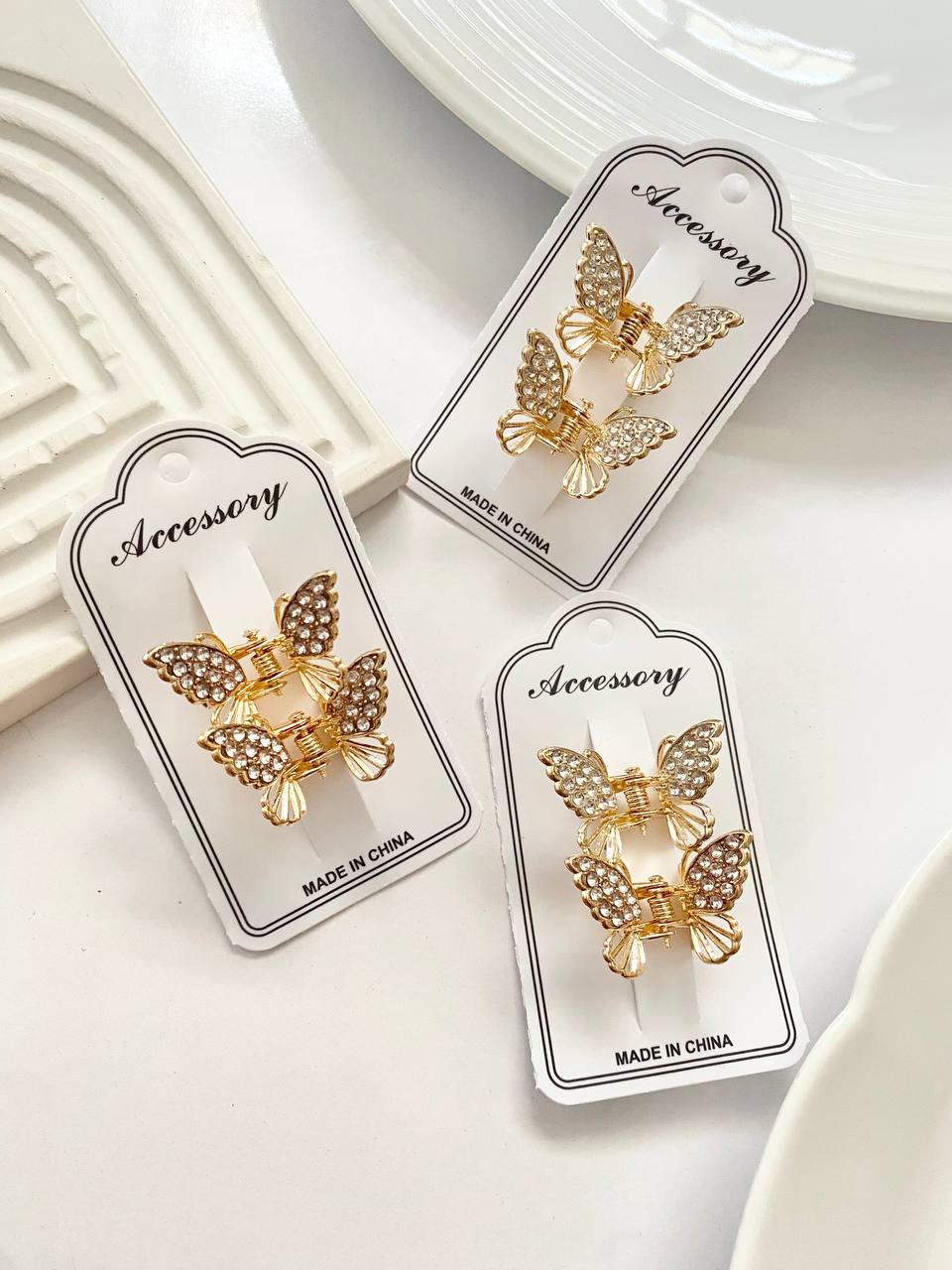 پک دو عددی مینی کلیپس زیبای پروانه با درخشش جواهری و سایز کوچک ، تصویری شیک از تکه ای جواهر را تداعی کرده و جلوه ای لوکس و لاکچری به موها میدهد .