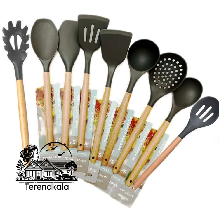 سرویس کامل تمام کفگیر ملاقه های سیلیکونی برند شنگیا . شامل تمام موارد داخل عکس . یعنی 9 عدد . دسته هاش چوب بامبو هست ..... جنسش سیلیکونی هست و اصلا قابلمه هارو خط نمیندازه . فوق العاده عمری و بادوام مناسب جهیزیه 🌹 راستی این کفگیر های سیلیکونی اصلا با پلاستیکی های قدیمی قابل مقایسه نیستند. 🛑آب نمیشن 🛑سرطان زا نیستن 🛑قابلمه هارو خط نمیندازن 🟢تحمل 220 درجه حرارت مستقیم 🌹ترند روز ...مناسب جهیزیه 🌹 برند شنگیا ، با هیچ مدل و برند دیگه ای مقایسه نکن . کیفیتش از همشون بالاتره بقیه برند ها کیفیت چوب پایینه یا پلاستیکی طرح چوبه . و داخل مواد سیلیکون مقداری پلاستیک قاطی داره .